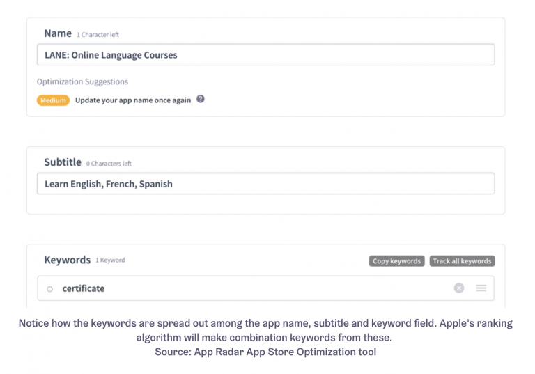 When it comes to keyword rankings, the keyword field has less ranking weight than the app name or subtitle. But it still has a huge impact on your overall App Store Optimization.