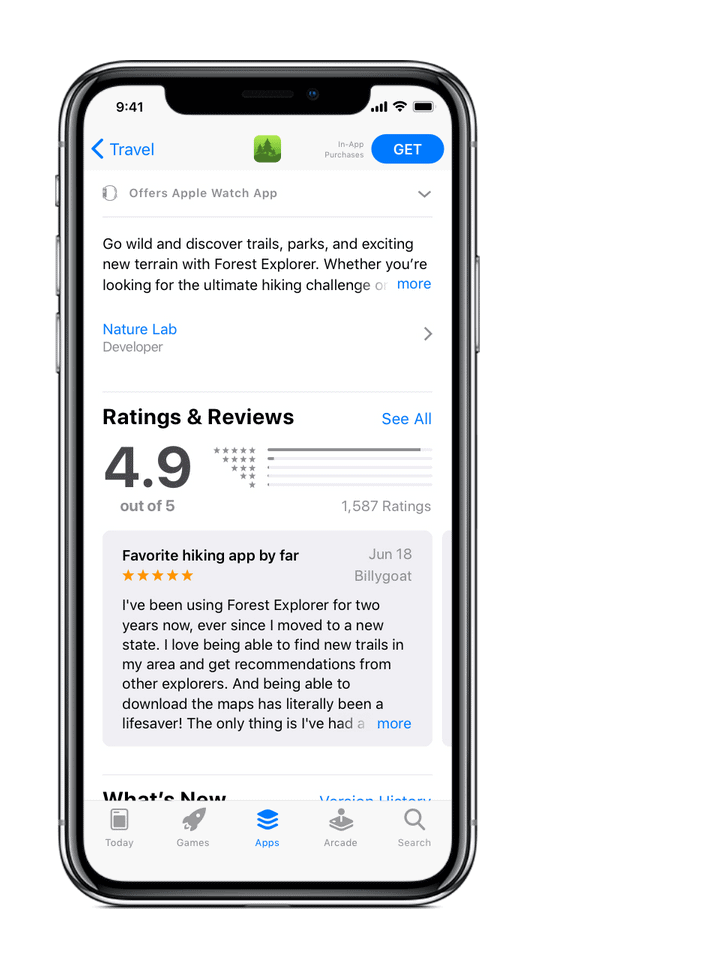 An app preview demonstrates the features, functionality, and UI of your app in a short video that users watch directly on the App Store.