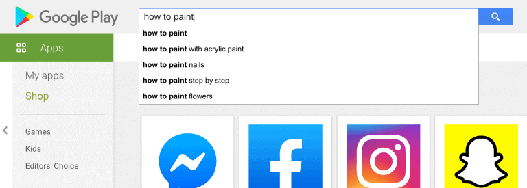 Let’s say as an example, I am interested in doing an App on teaching how to paint. If I want to know what the biggest searches are online, Google has autosuggest, which are the suggestions that appear on screen as you start typing your search.